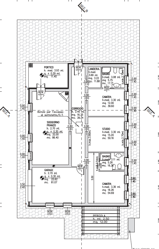 • Sviluppo su piano terra, monolivello, con distribuzione funzionale degli spazi;